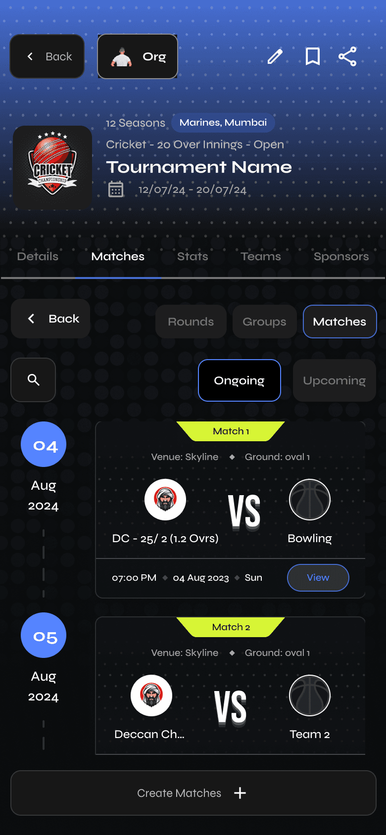 Tournament Creation & Match Planning