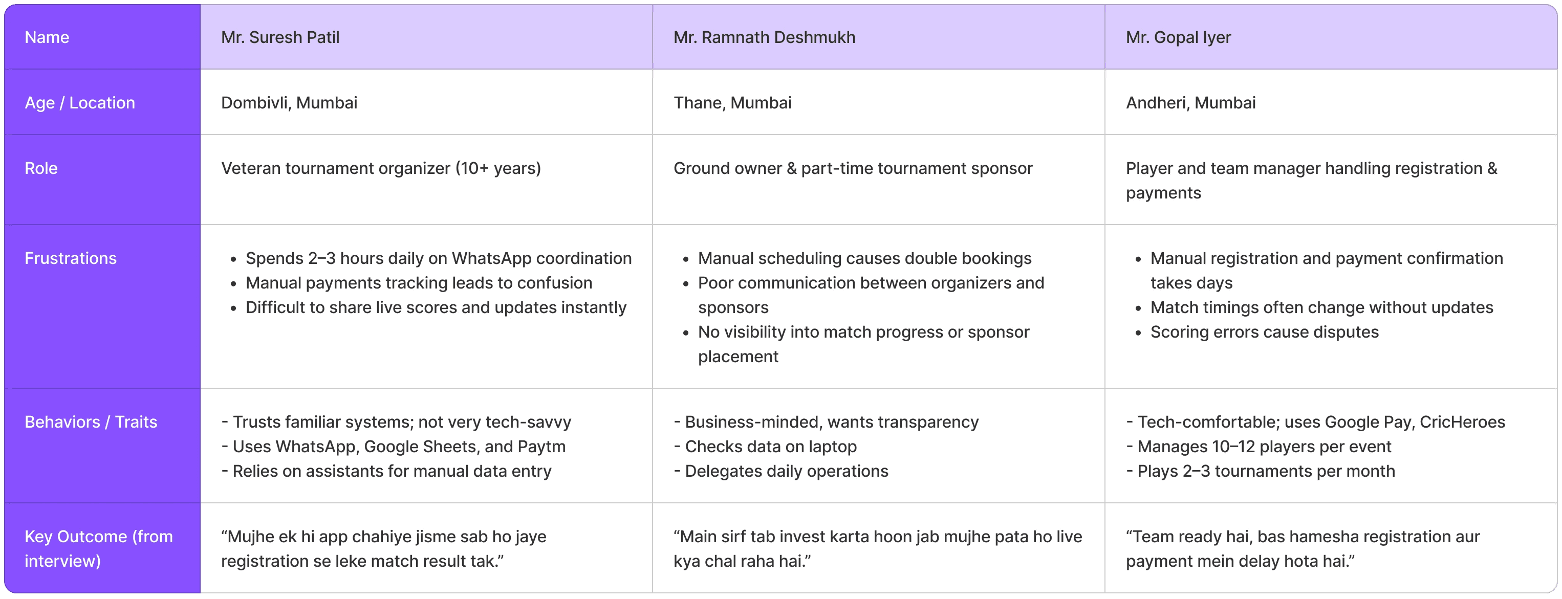 The founder’s initial brief was ‘build a tournament app. But when we interviewed real hosts and players in Mumbai, the pain wasn’t hosting it was coordination