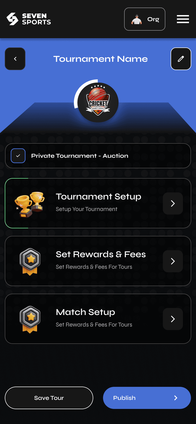 Easy-to-use interfaces for setting up tournaments, defining match formats, team structures, and assigning fees by team or player.